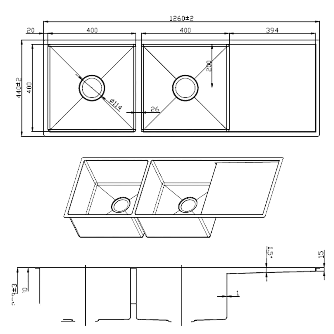 - 1.2mm sink body thickness that adds durability and strength to withstand daily use and heavy loads