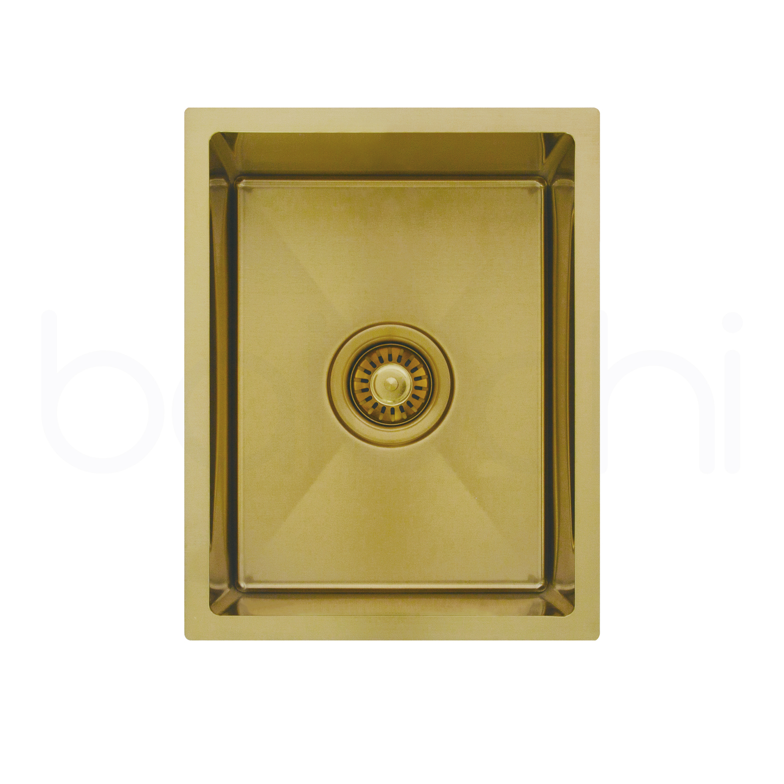 340X440mm Handmade Laundry Kitchen Sink Top/Under Mount Brushed Gold