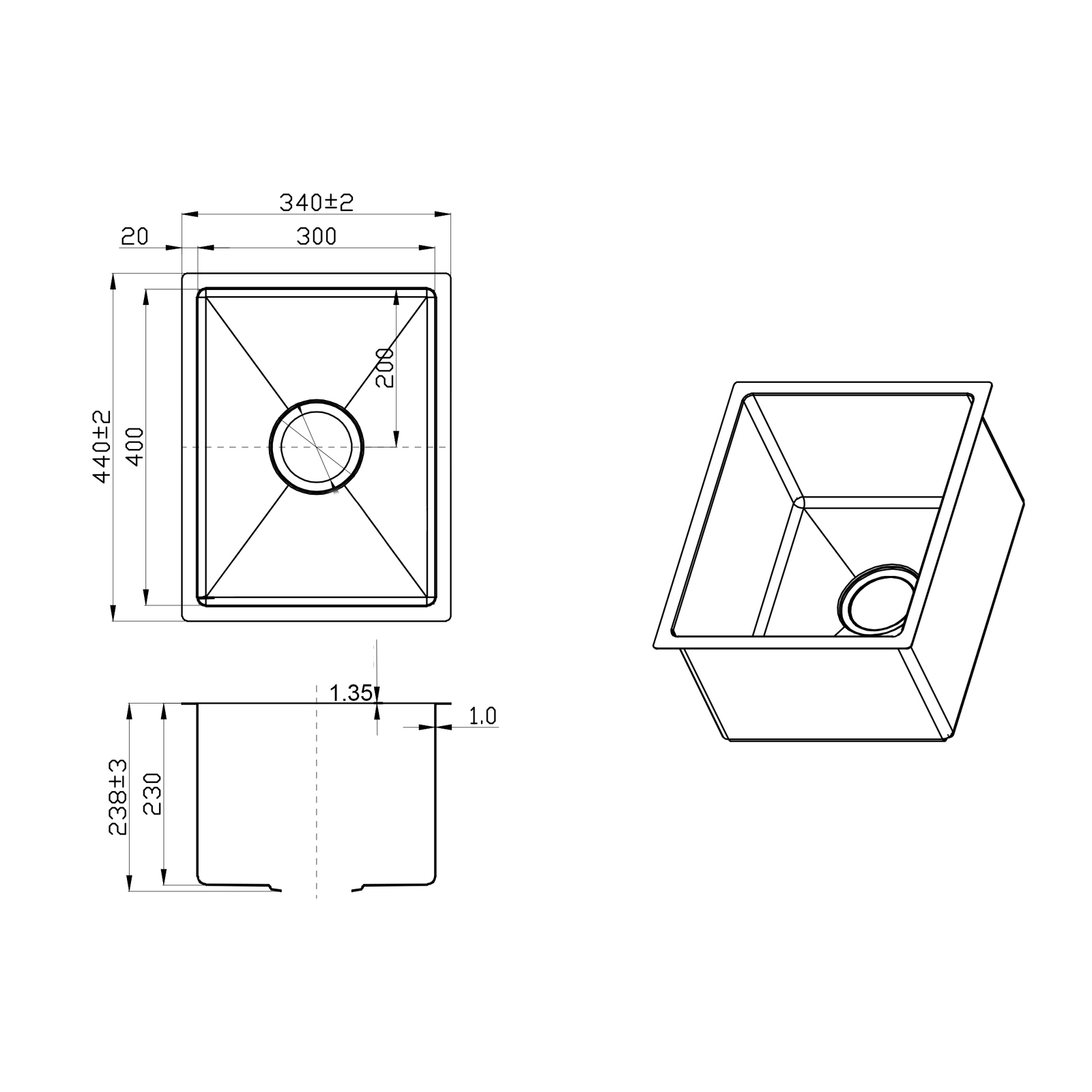 - 1.2mm sink body thickness that adds durability and strength to withstand daily use and heavy loads