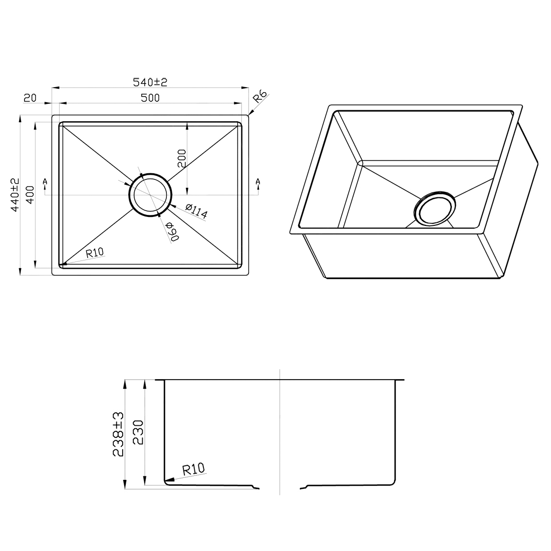 - 1.2mm sink body thickness that adds durability and strength to withstand daily use and heavy loads
