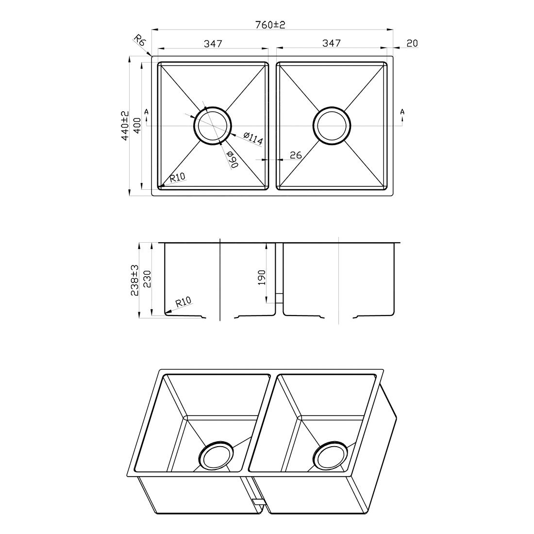 - 1.2mm sink body thickness that adds durability and strength to withstand daily use and heavy loads