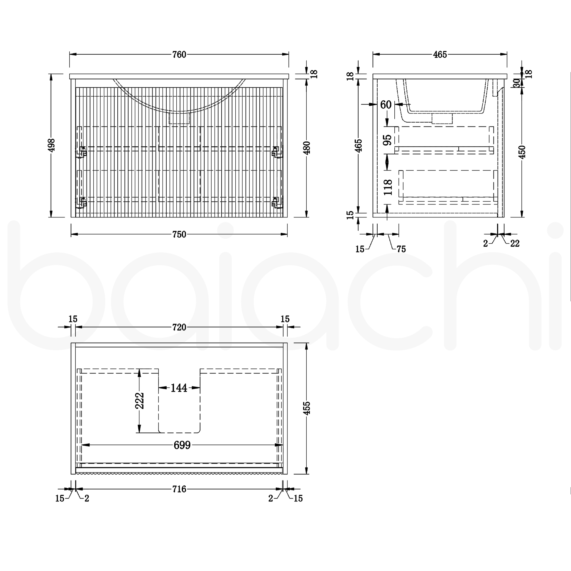 Baiachi Clermont 750 Fluted Timber Bathroom Vanity Wall Hung Cabinet