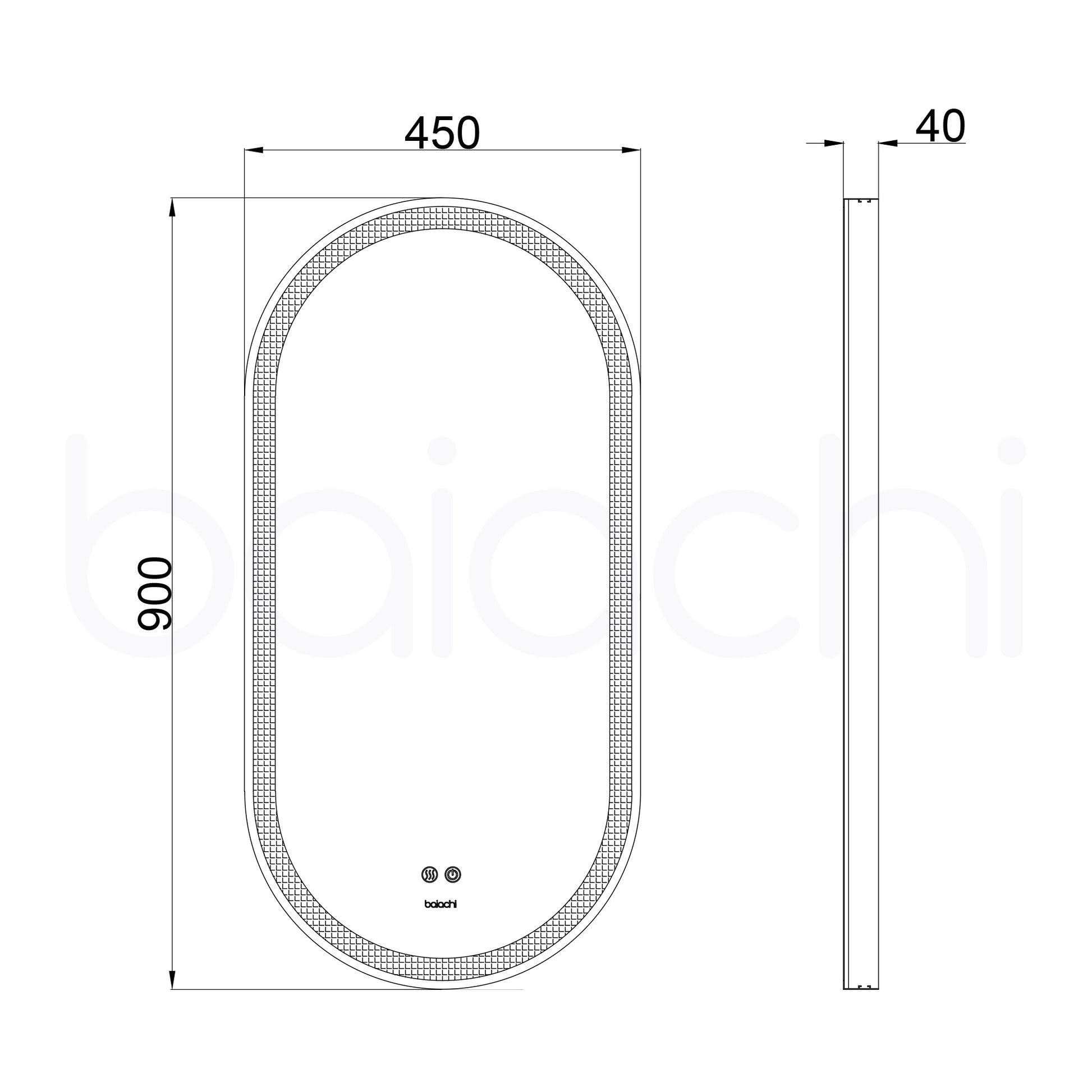 Baiachi Cora LED Oval 450mmx900mm Frame Mirror Brushed Gold