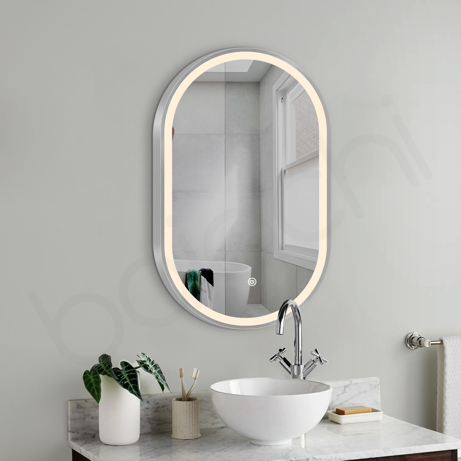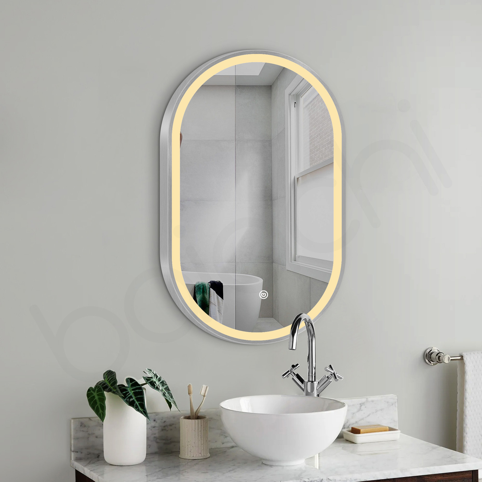 Baiachi Cora LED Oval 600mmx900mm Frame Mirror Brushed Silver