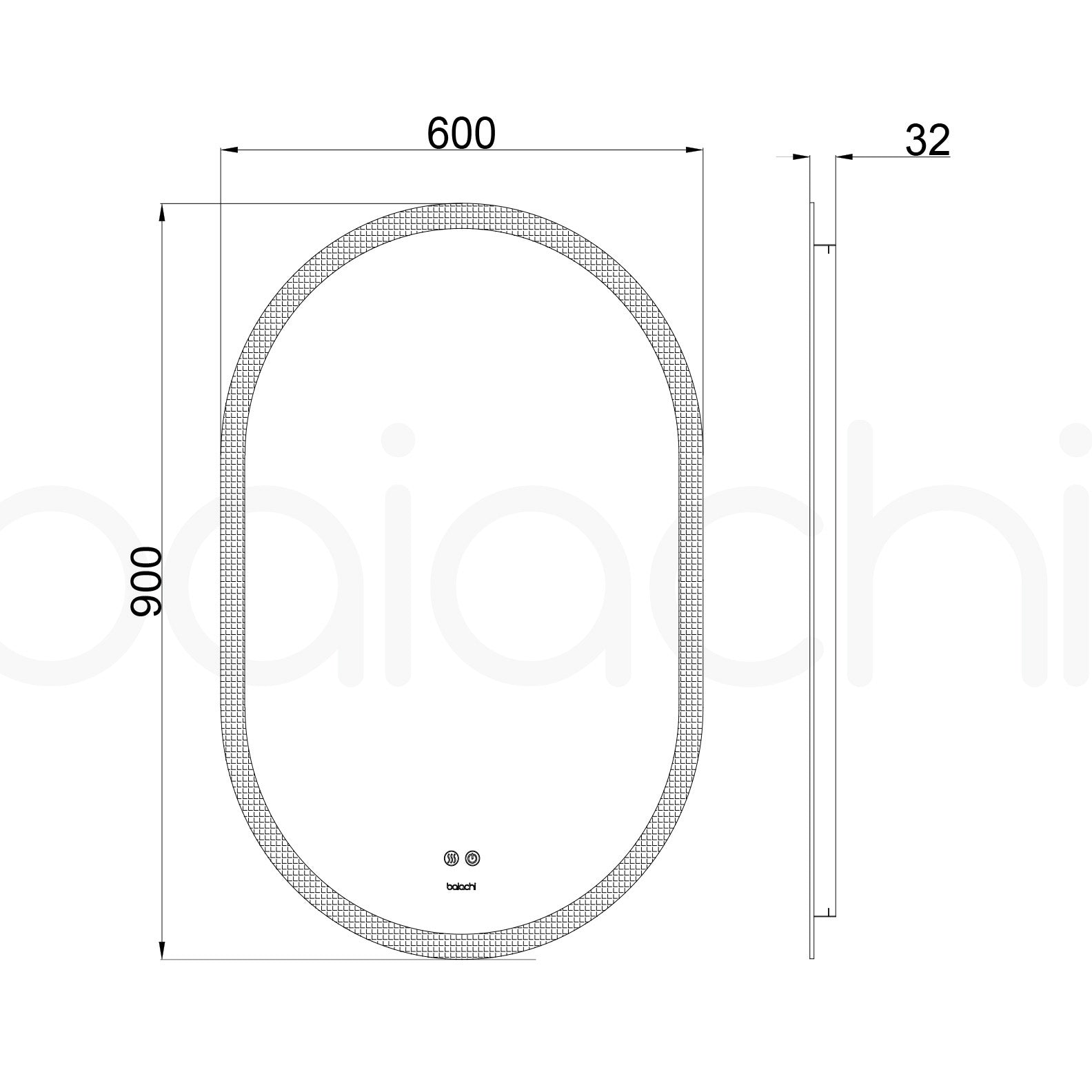 Baiachi Cora LED Oval 600mmx900mm Frameless Mirror.