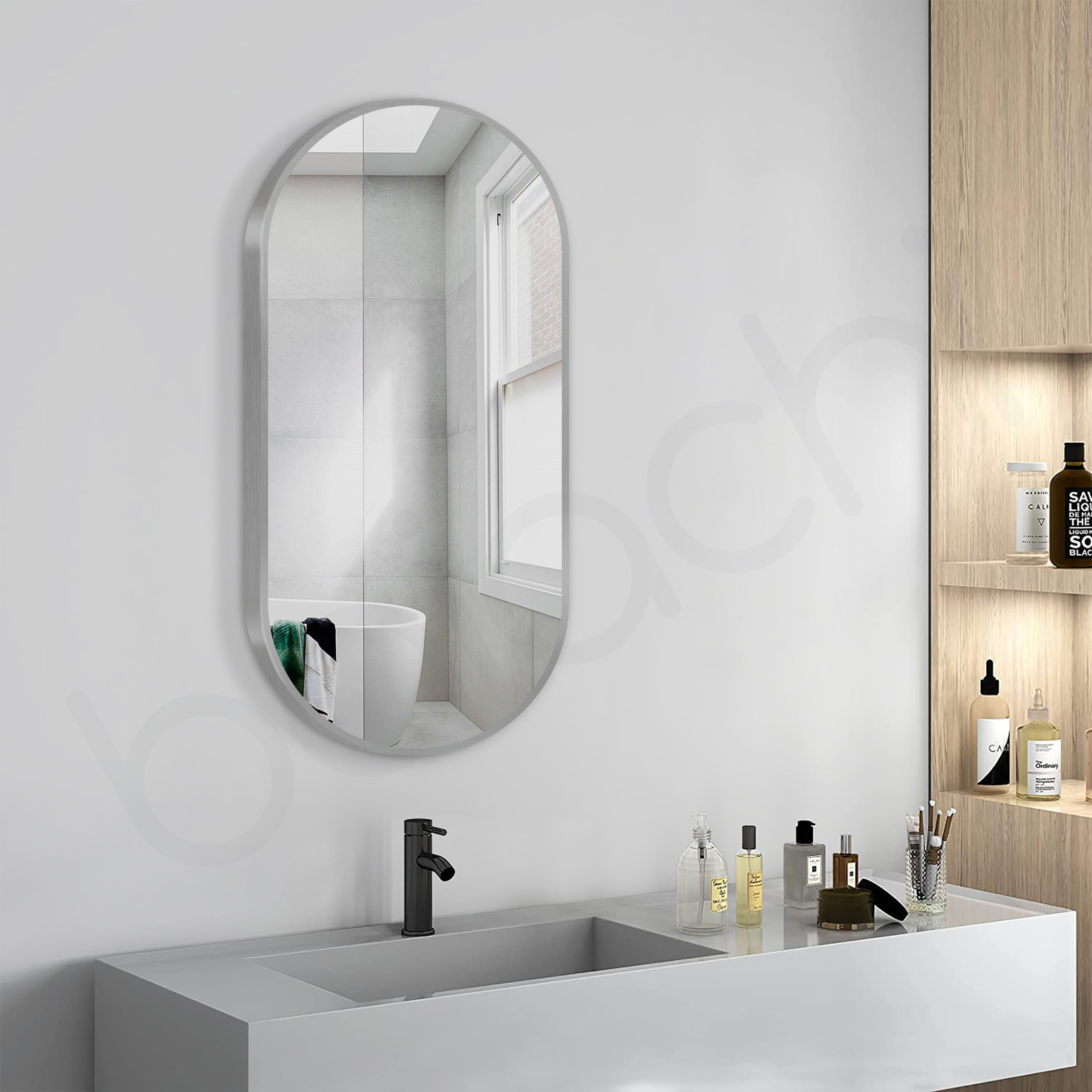 Baiachi Cora Oval 450mmx900mm Frame Mirror Brushed Silver