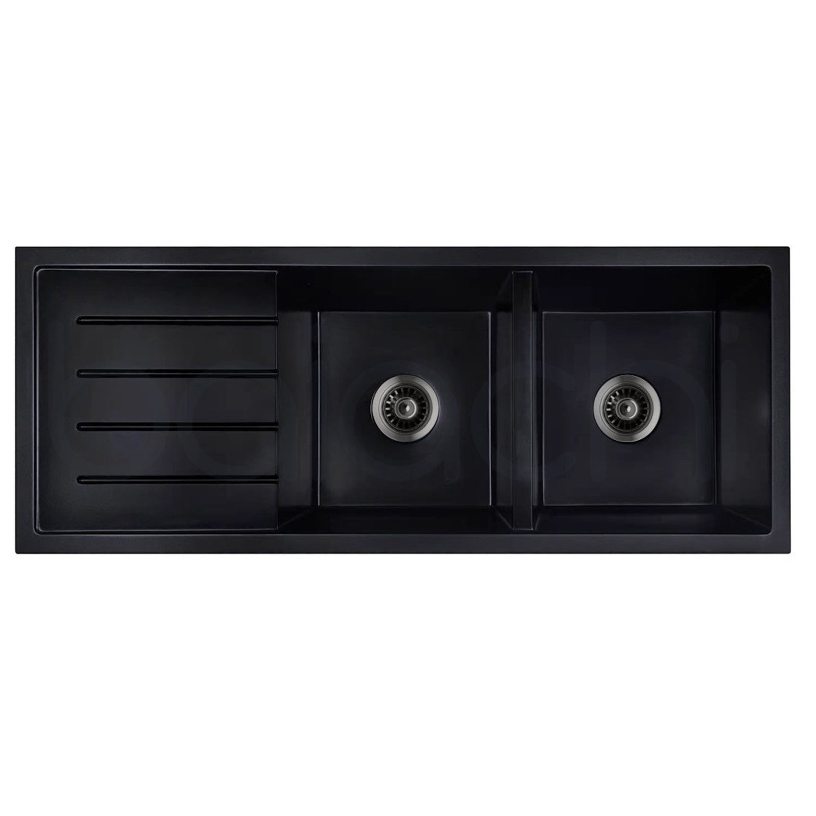 Baiachi 1160 x 450 Double Bowl and Drainer Granite Kitchen Sink Black with Gun metal Waste
