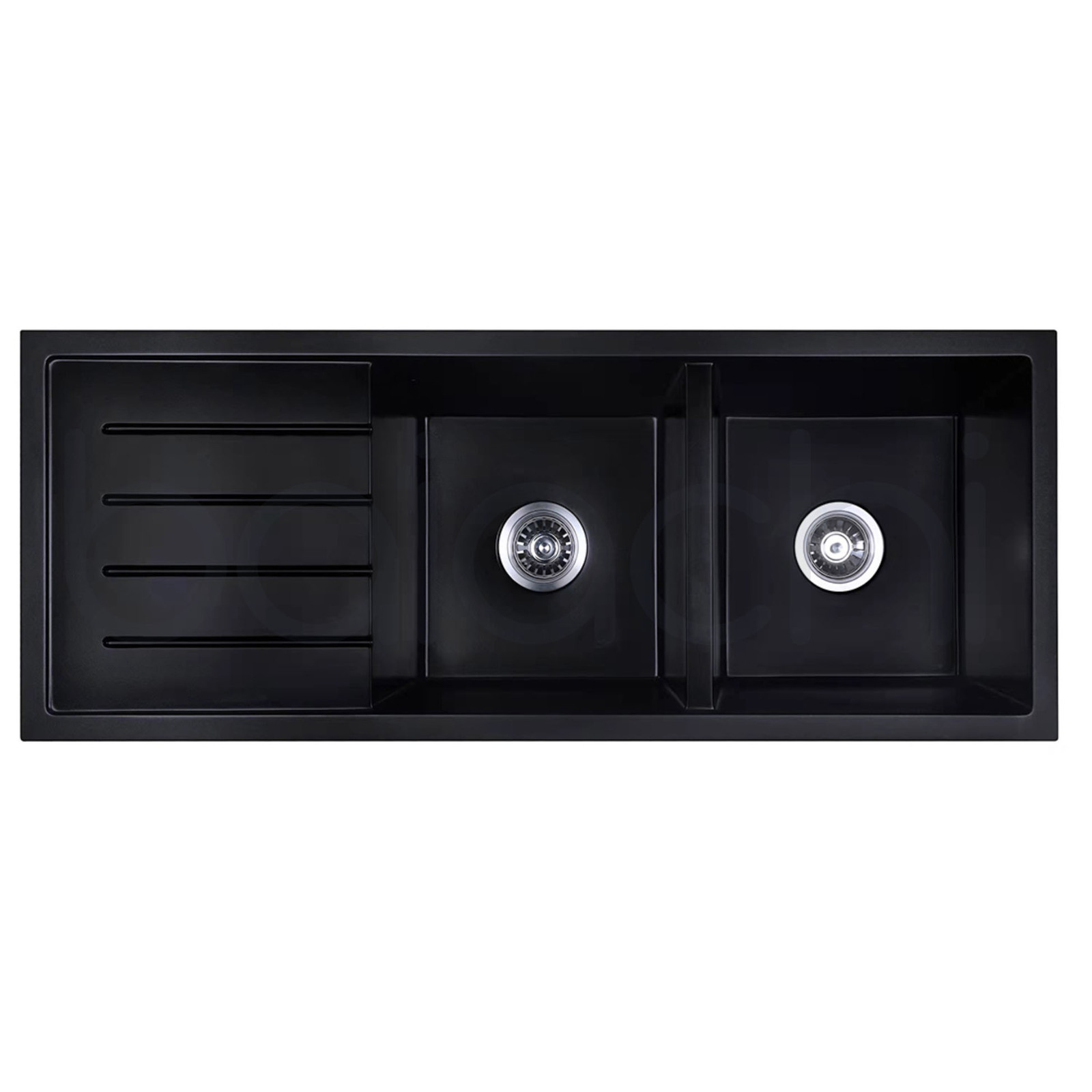 Baiachi Double Bowl and Drainer Granite Kitchen Sink Black with Stainless Steel Waste