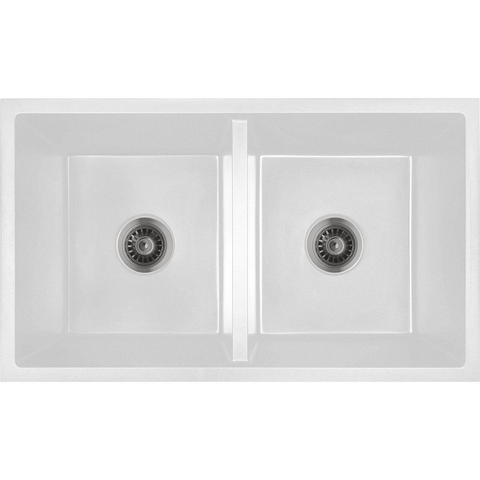 Baiachi 770 x 450 Double Bowl Granite Kitchen Sink White with Gun metal Waste