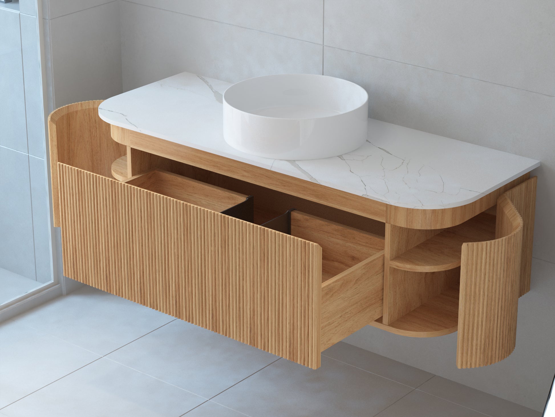 Baiachi Gympie 1200 Fluted Timber Bathroom Vanity Wall Hung Calacatta Stone