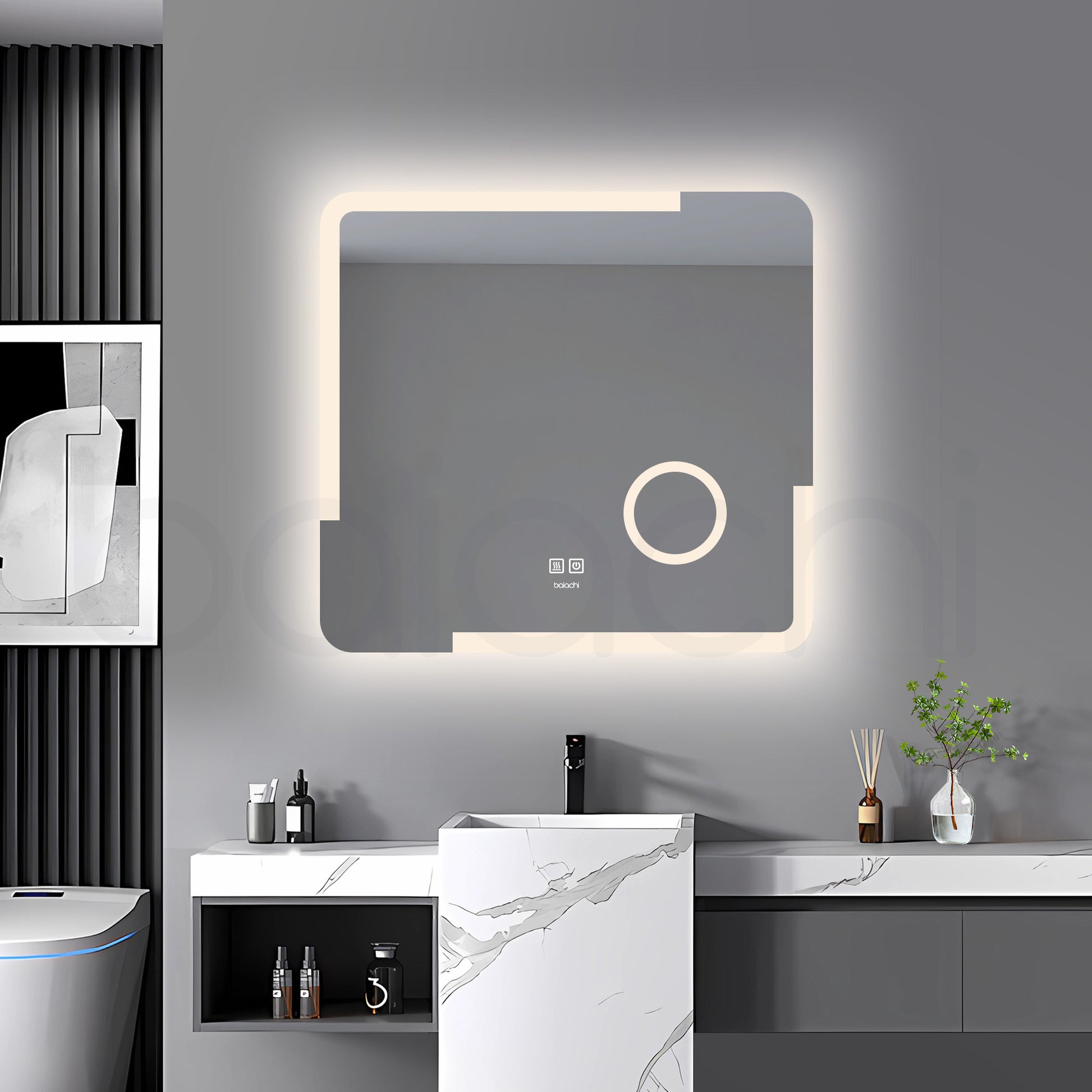 Baiachi LED Square 750x700mm Anti-Fog Mirror with Magnifier