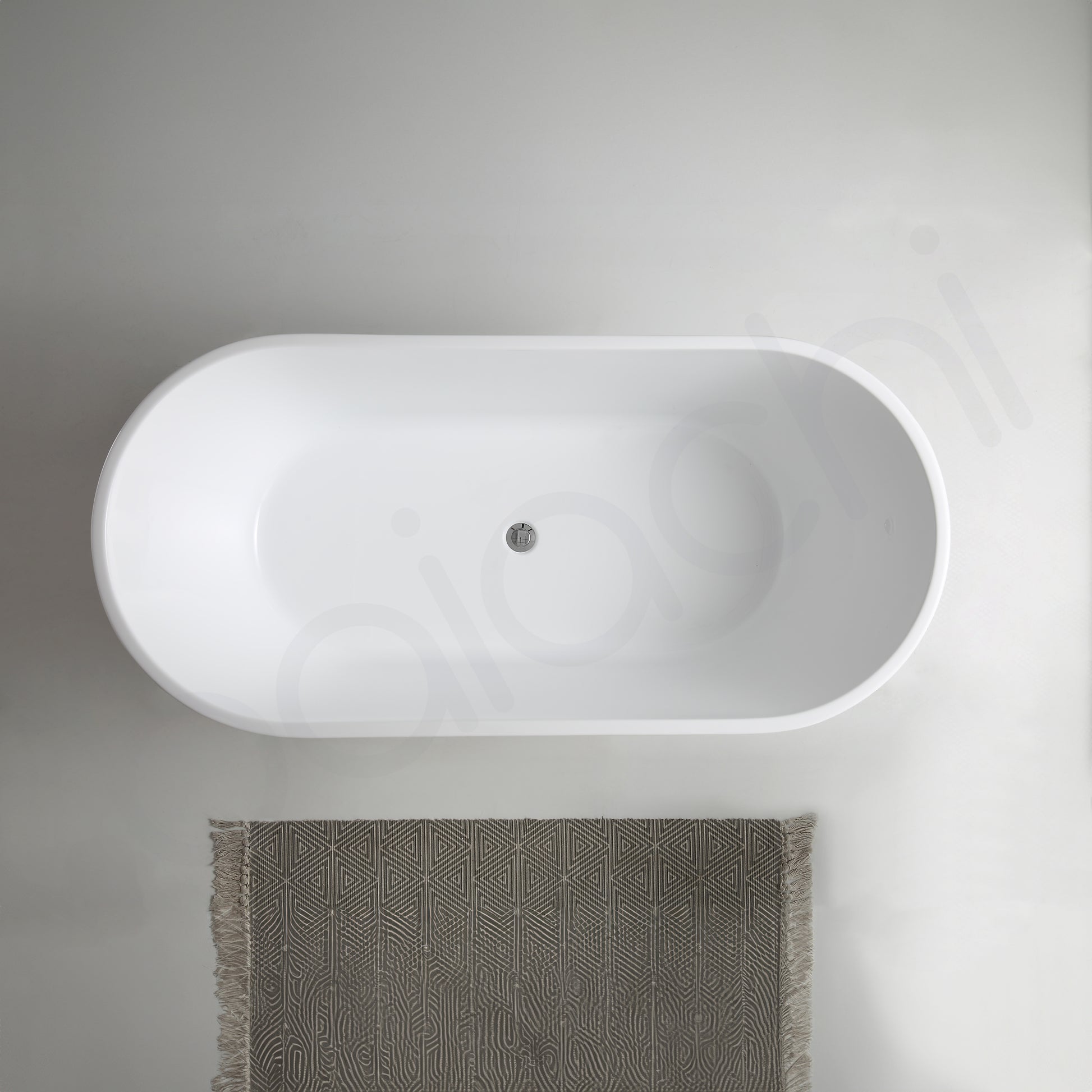 Quality oval freestanding bathtub Made of high-quality sanitary grade acrylic and reinforced fibre glass Features a white high gloss finish for sophistication. Has a thin edge design for a modern appearance? Offers comfortable bathing space. Comes with adjustable feet for stability. Waste Not Included