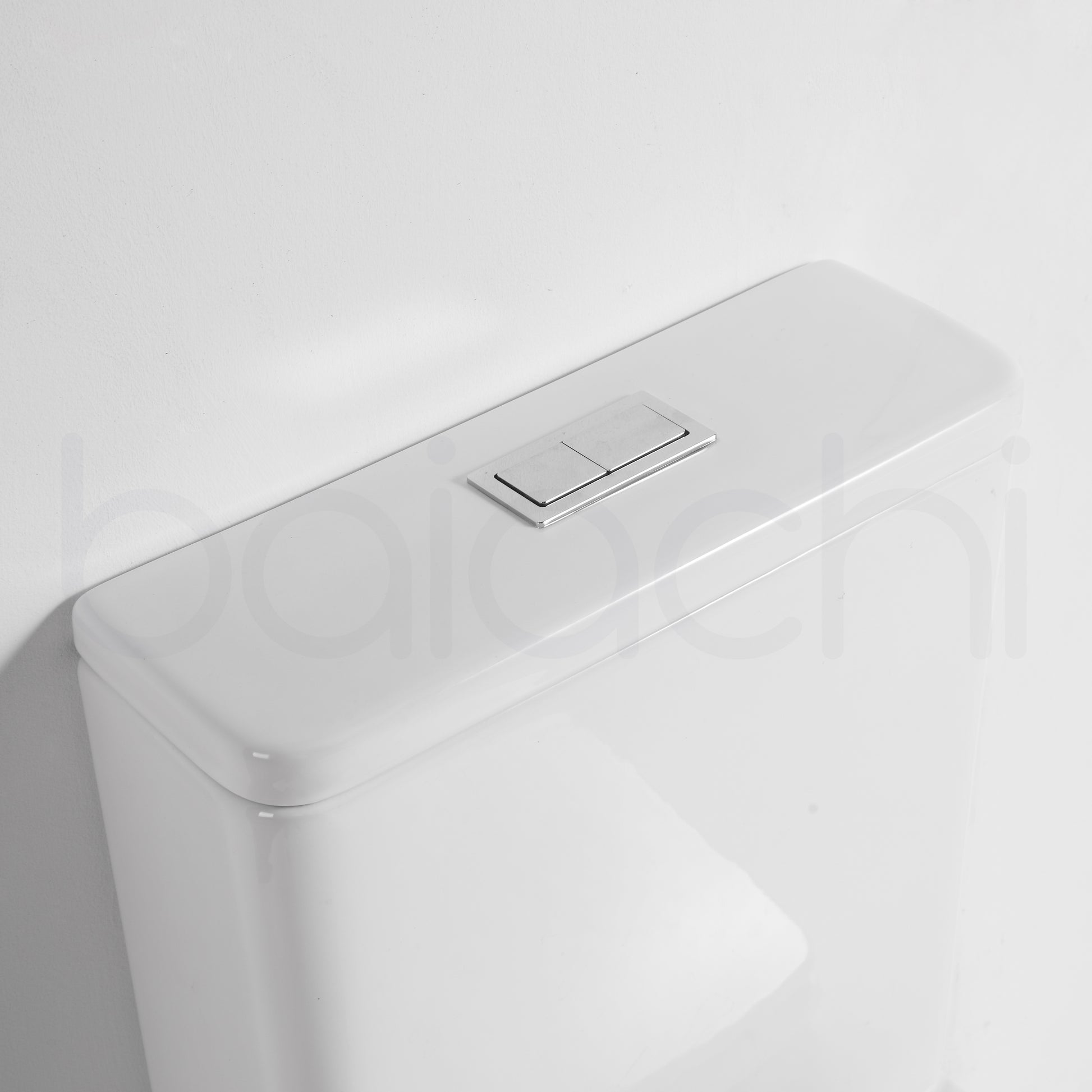 - Dual flush buttons chrome: The toilet suite comes with dual flush buttons in a sleek chrome finish, with spring-loaded paddles and adjustable button rods.