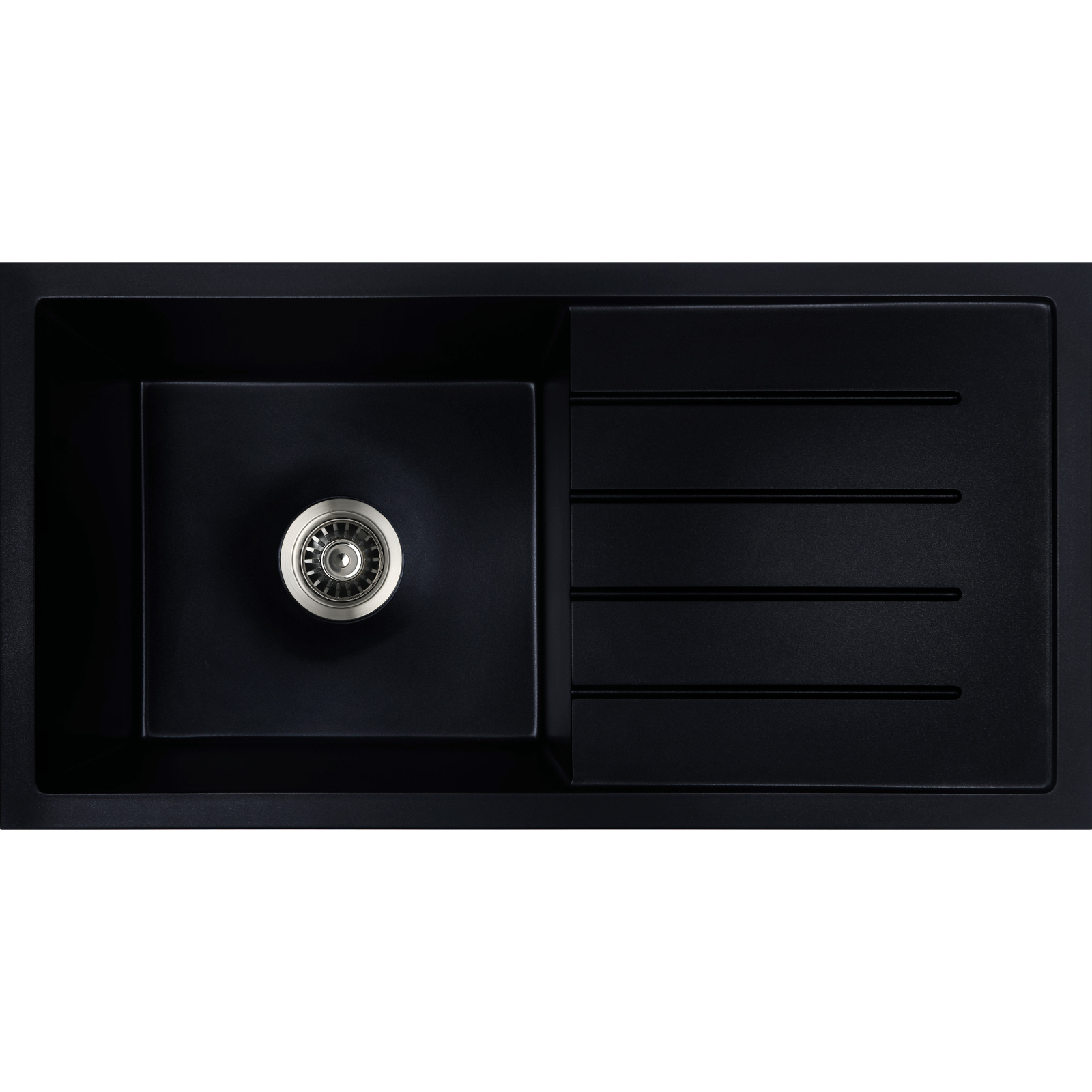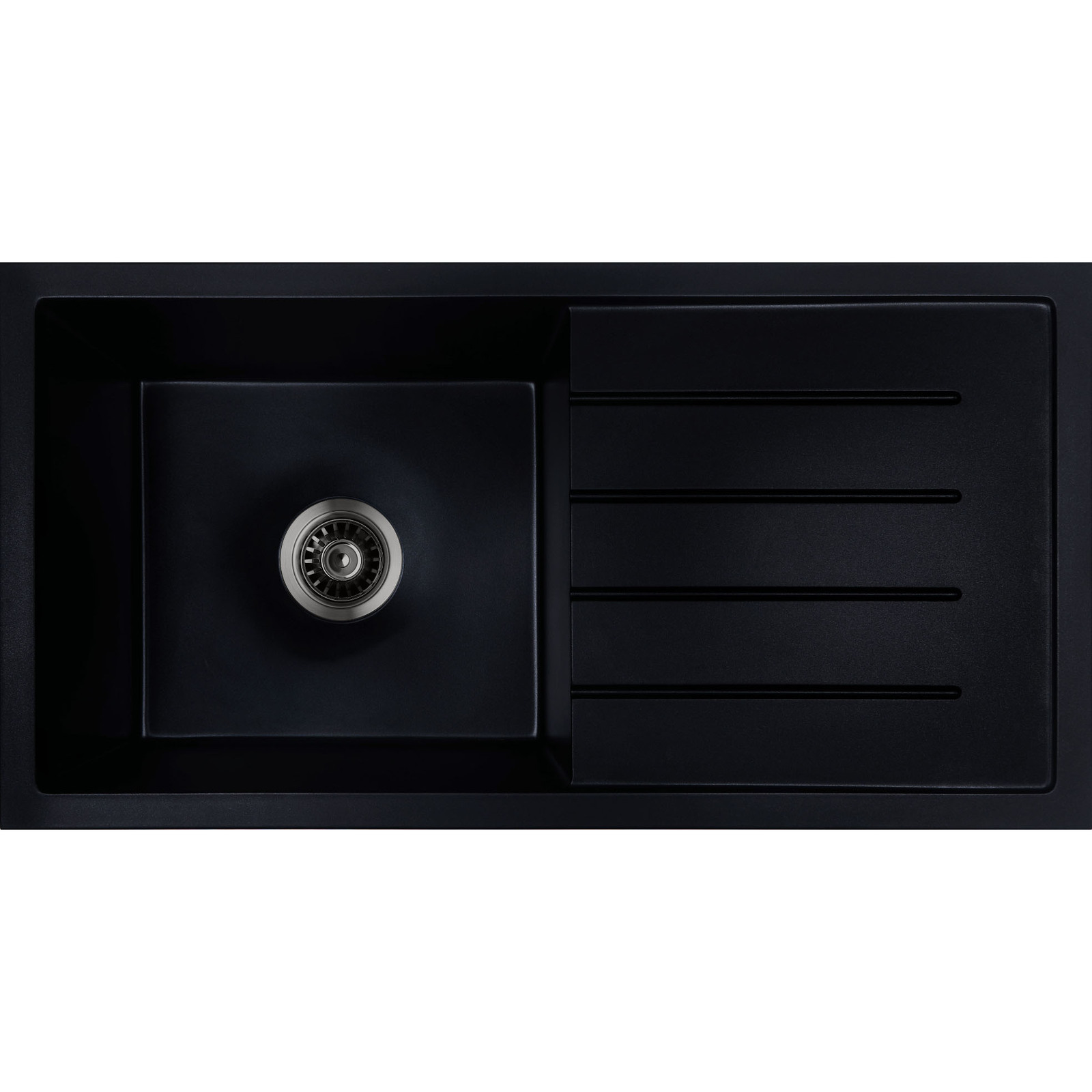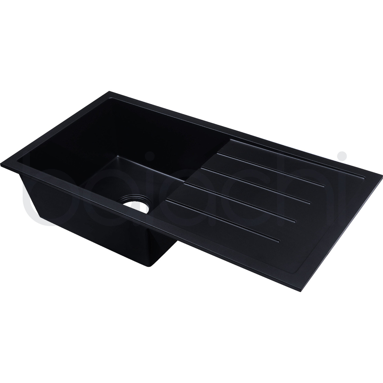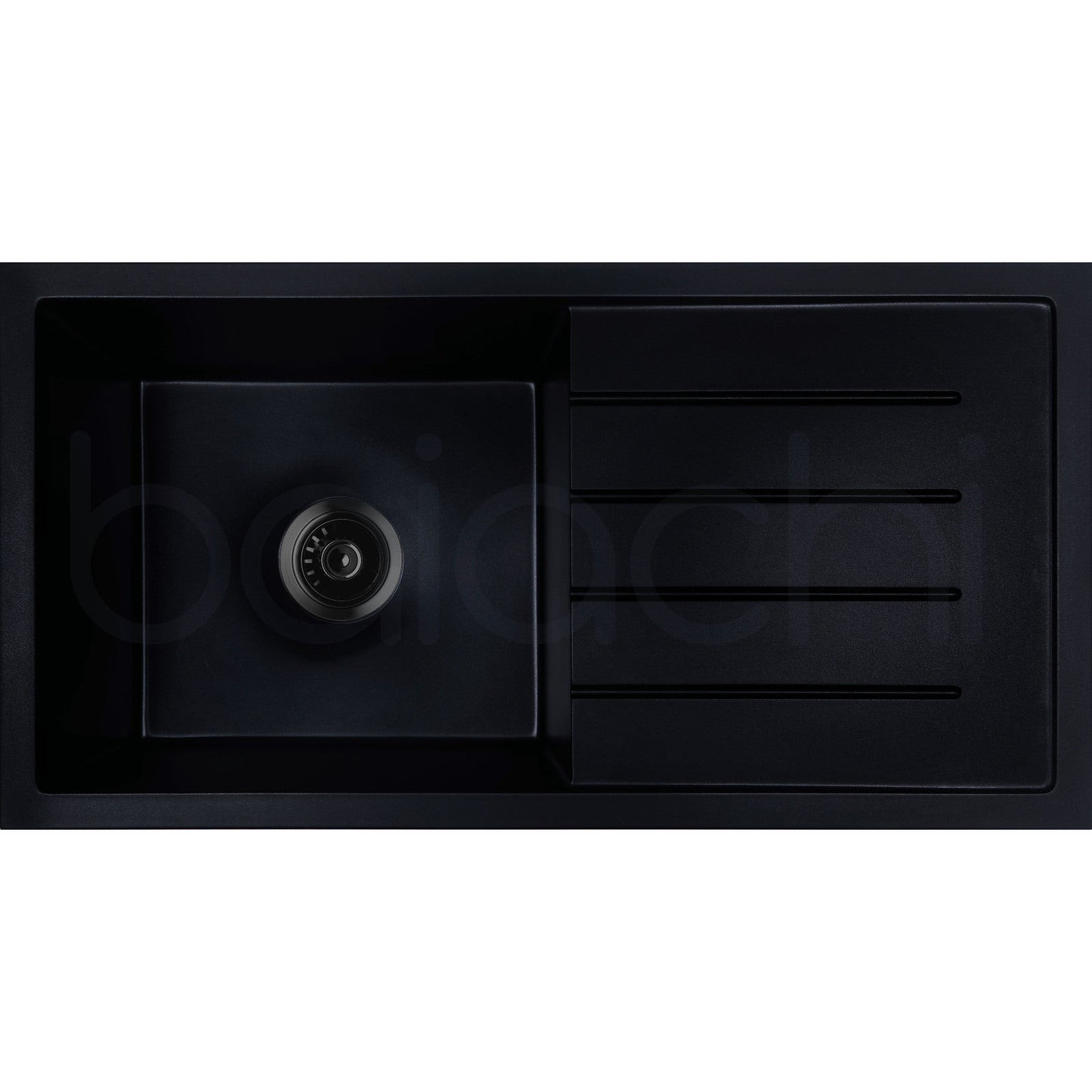 Baiachi 860 x 450 Single Bowl and Drainer Granite Kitchen Sink Black with Black Waste