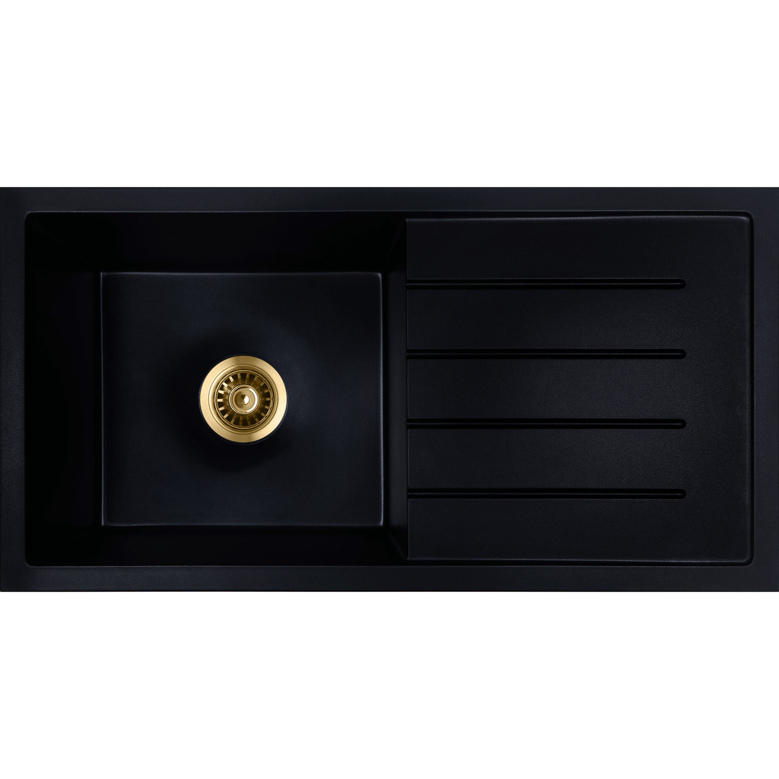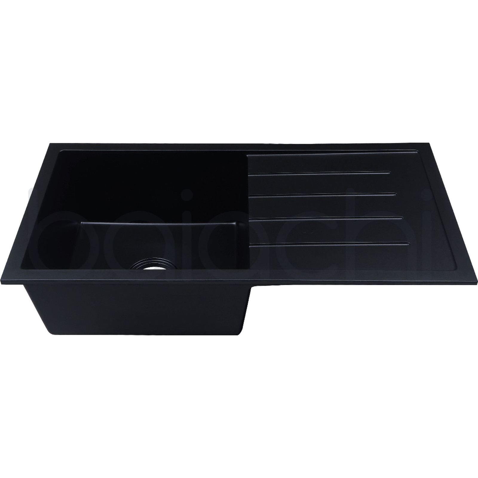 Baiachi 860 x 450 Single Bowl and Drainer Granite Kitchen Sink Black with Gun metal Waste