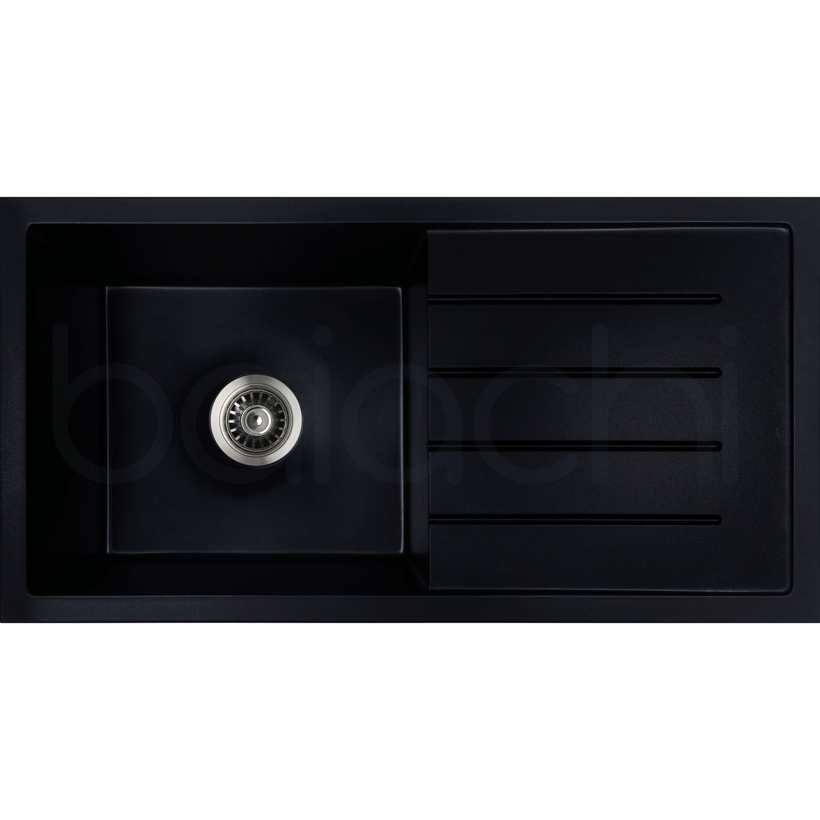 Baiachi Single Bowl and Drainer Granite Kitchen Sink Black with Stainless Steel Waste