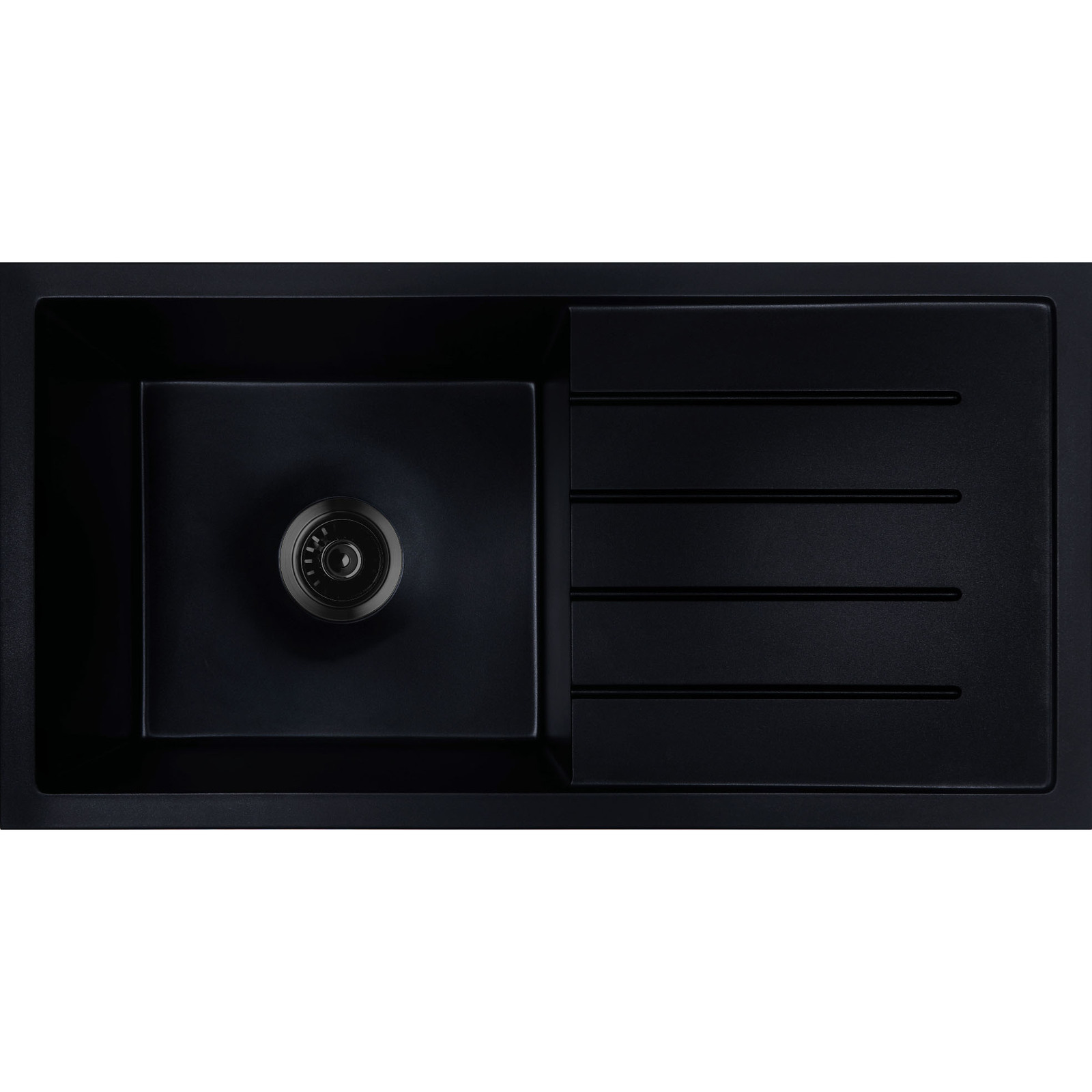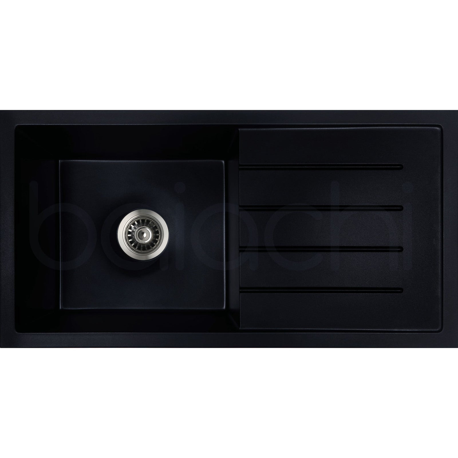 Baiachi 860 x 450 Single Bowl and Drainer Granite Kitchen Sink Black with Stainless Steel Waste