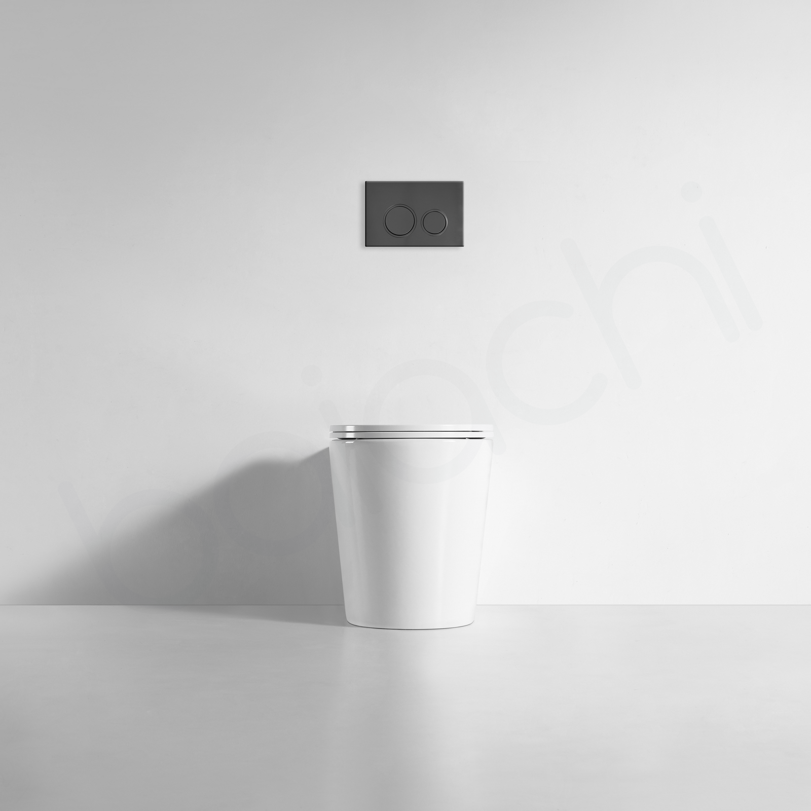 Ballina Rimless In Wall Toilet Suite with Round Gun Metal Flushing Buttons