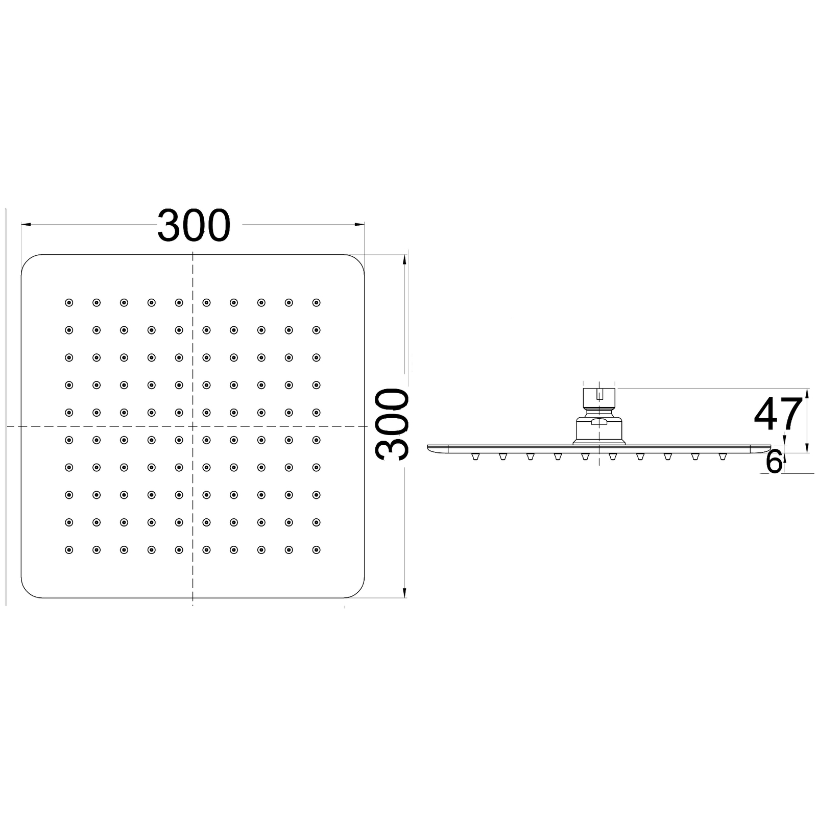 Ikon Seto Square Stainless Steel Shower Head 300mm Chrome