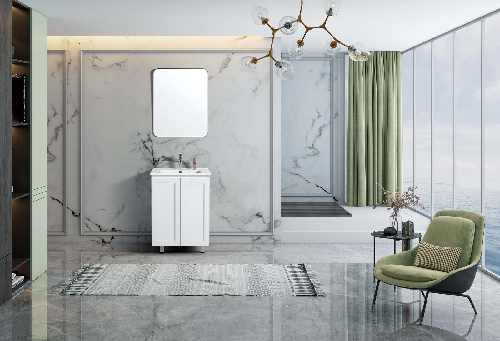 - Mirror, counter top basins, basin mixer taps and plug-wastes are not included